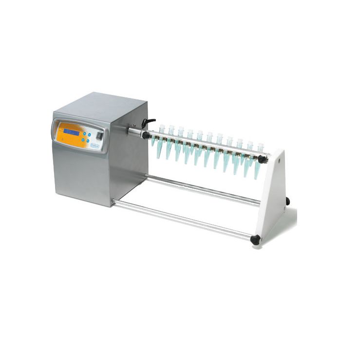 Digital rotary mixer for continuous laboratory use. Microprocessor-controlled with progressive start and stop. Accepts a range of interchangeable holders for different vessel types.