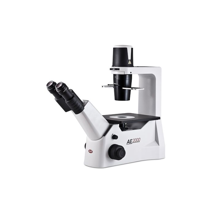Characteristics of High-end biological inverted microscope MOTIC AE-2000 seriesBinocular or trinocular head (according to model) Siedentopf type, 30º inclined and 360º rotating. Widefield high eyepoint N-WF10X/20 mm eyepieces with dioptric adjustment and protectors in both eyepieces. Side facing quadruple nosepiece with CCIS Plan achromatic objectives (Colour Corrected Infinity System) PL4X and CCIS Plan Achromatic Phase objectives PL Ph10X (Ph1) and LWD PL Ph20X (Ph 1). ELWD condenser N.A. 0.30. Phase slider Ph1, BF, Ph2Phase centering telescope. Plain stage with metal and glass stage inserts. Ø 45 mm blue, green interference and neutral density filters with filter slider, dust cover, hexagonal Allen key and immersion oil 5 ml bottle included. Quartz halogen illumination 6V/30W with intensity control and sleeping mode. Universal supply 100-240 V (CE). 5 years warranty on optical and mechanical components. Delivery time 2-3 weeks