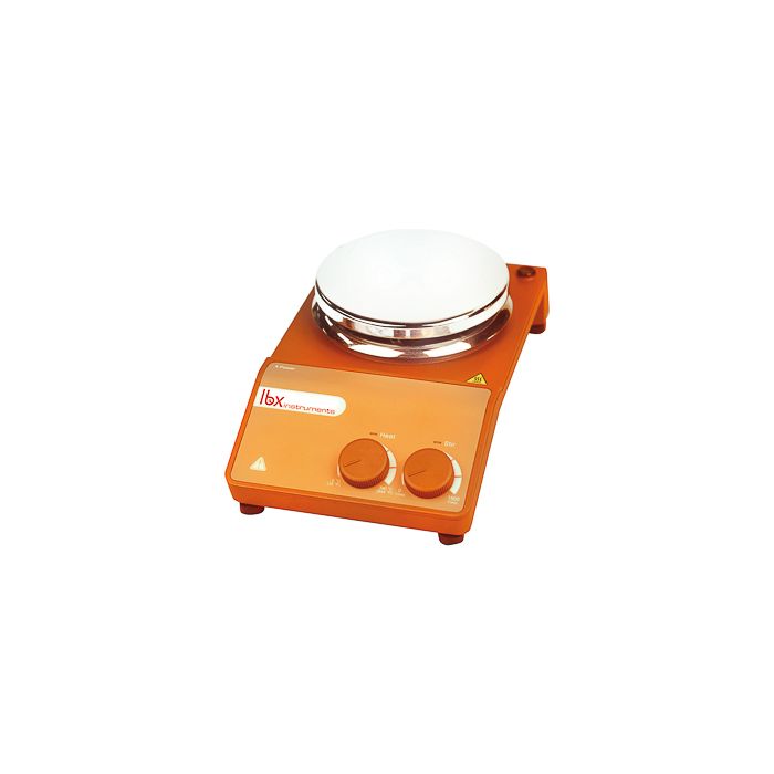 Characteristics of Magnetic stirrer with heating up to 340 °C LBX H20 20 LCeramic coated hotplate. Stirring speed adjustable between 0 and 1500 rpm. Temperature adjustable up to 340 ºC on plate. Heating power: 530 W. Separated safety circuit, automatically stopping heating when temperature goes over 350 ºC. Capacity: 20 L. Motor with electronic speed control, constant speed even during changes in load. High magnetic adhesion, preventing the stirrer bar from escaping. DC brushless motor maintenance free. For beakers with Ø<135 mm and magnetic bars fromt 30 mm up to 80 mm long. Supplied with a PTFE magnetic bar. External dimensions (L x W x H): 280 x 160 x 85 mm. 200-240 V / 50-60 Hz, insulation rating IP42 (DIN EN60529). Warranty 2 years