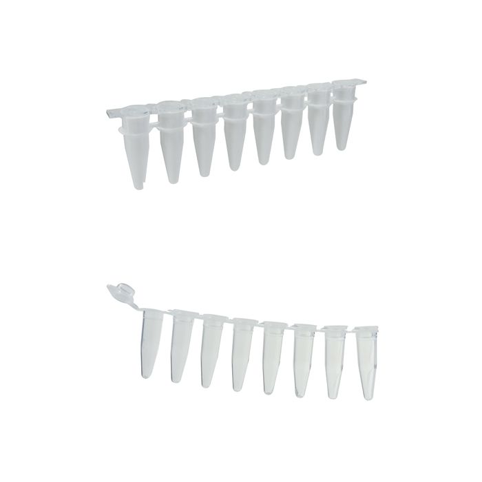 Characteristics of PCR tube stripsStrip of 8 tubes for PCR, optimized for all thermocycler models. Made of polypropylene USP VI. Human DNA free and certified DNase, RNase and PCR-inhibitors free. Natural colour, autoclavable
