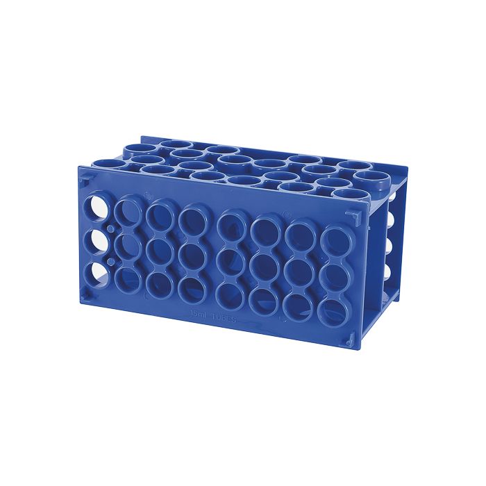 Characteristics of Universal test tube rackMade of polypropylene. Autoclavable. In each side, different tube diameters can be hold: 40 tubes Ø 12 mm, 20 tubes Ø 20 mm, 24 centrifuge tubes 15 ml or 8 centrifuge tubes 50 ml