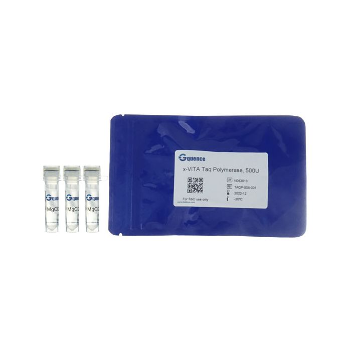Characteristics of x-VITA Taq PolymeraseThe x-VITA Taq DNA Polymerase is a thermostable recombinant enzyme produced in an E. coli strain, which carries the cloned pol gene from Thermus aquaticus. The enzyme has 5’→3’ polymerase activity